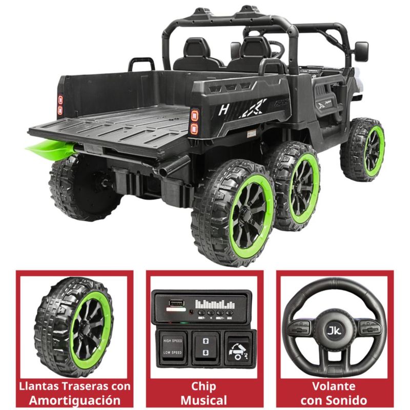 Montable Eléctrico para Niños 6x6 Caja de Vuelco Atomática Luz y Sonido Bluetooth 12v - Negro