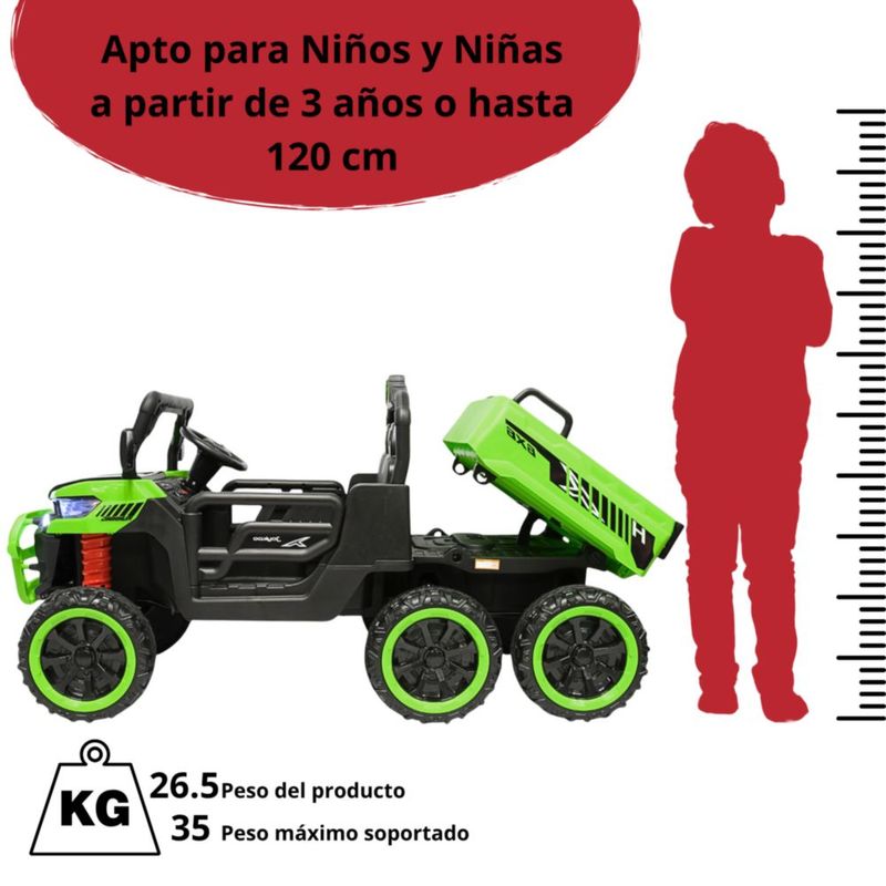 Montable Eléctrico para Niños 6x6 Caja de Vuelco Atomática Luz y Sonido Bluetooth 12v - Verde