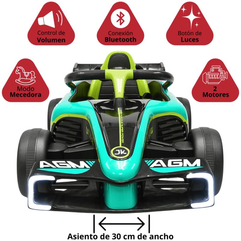 Montable Electrico para Niños Carro de Carreras Bluetooth Control Remoto Batería 12V Apto A Partir de 3 Años Soporta Hasta 30 Kg - Verde F1