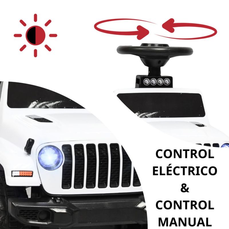 Montable Electrico para Niños Híbrido con Bastón y Pedal Acelerador Barras de Seguridad Luces Batería 6v - Blanco