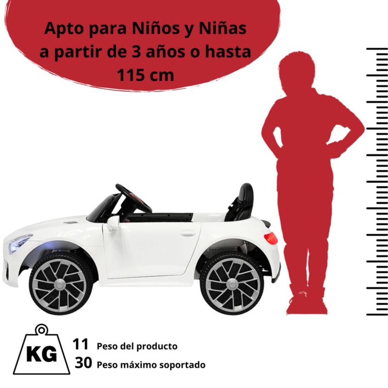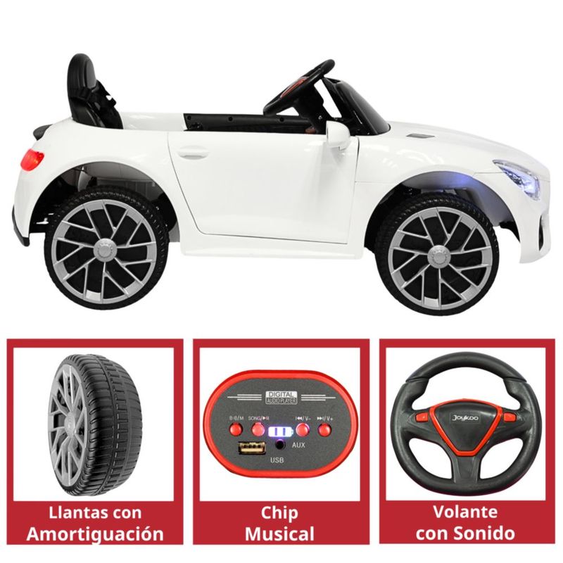 Bebés y juguetesJuguetesMontablesMontable Electrico para Niños Mini GT Bluetooth USB y Auxiliar Luces Sonido Batería 12v - Blanco