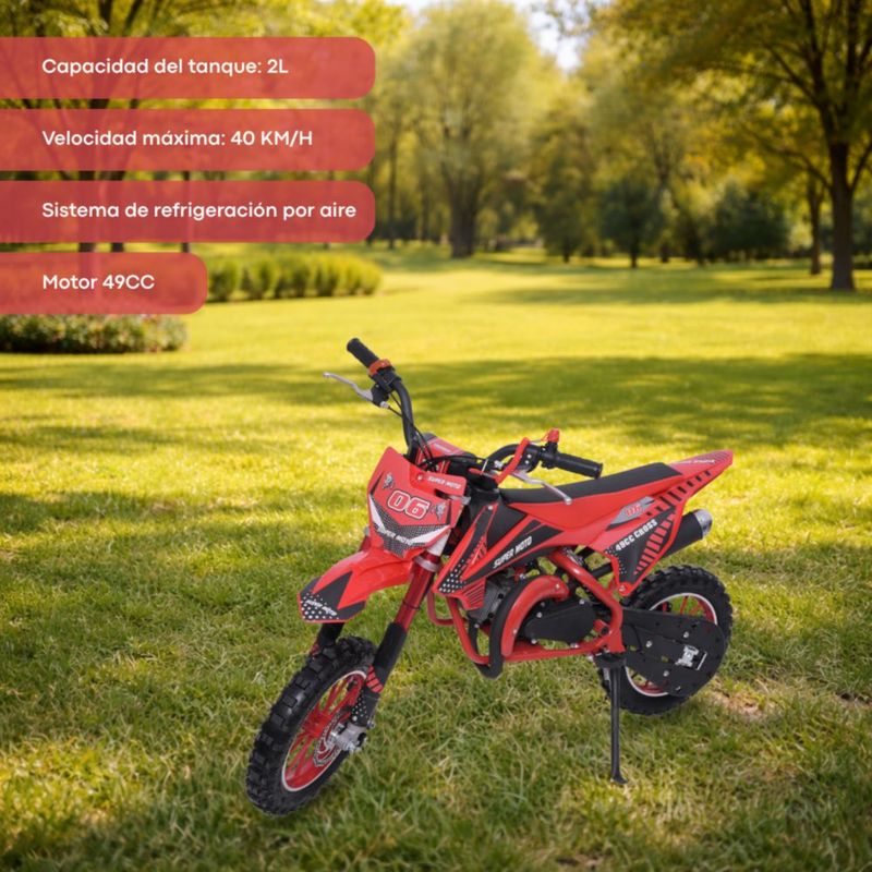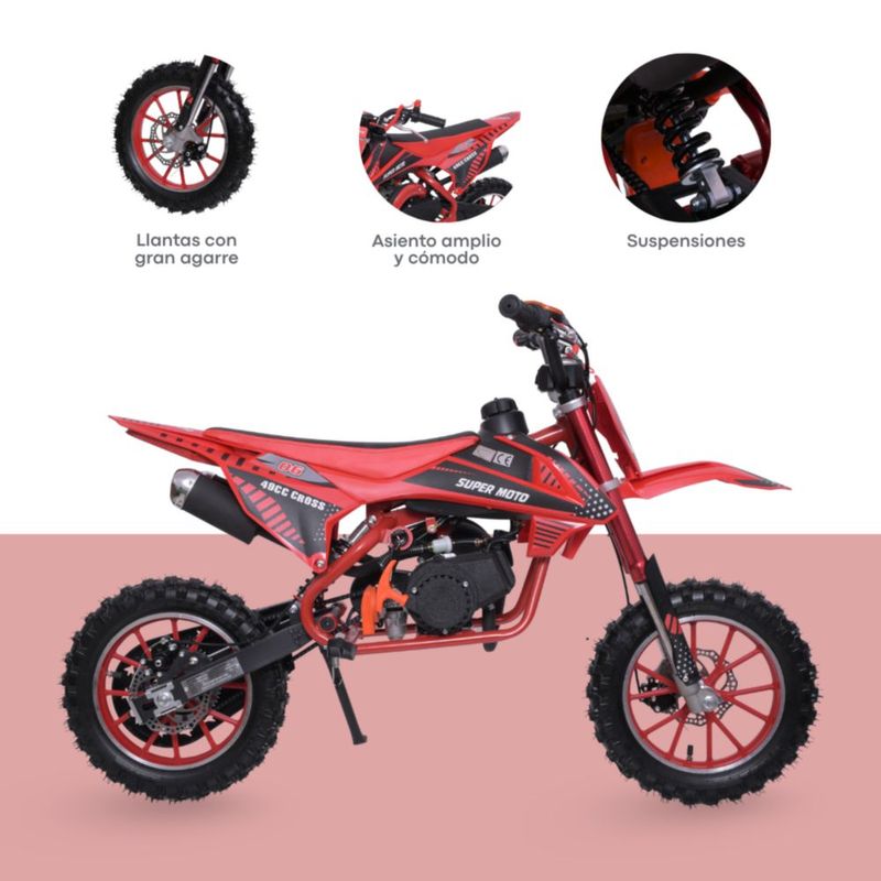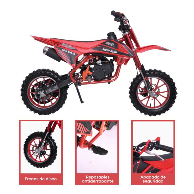 Moto Cross Para Niños Starkids Skr1006 Gasolina Doble Escape Rojo