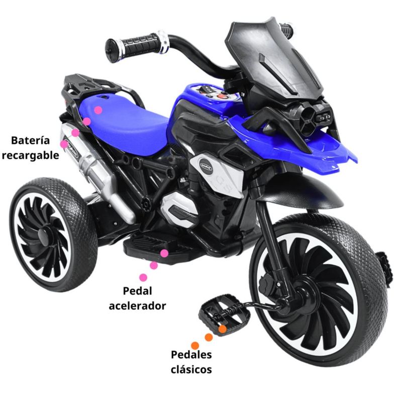 Bebés y juguetesJuguetesMontablesMoto Montable Eléctrica para Niños Triciclo Híbrido con Luces y Sonido Recargable 6v Soporta hasta 30 kg - Azul