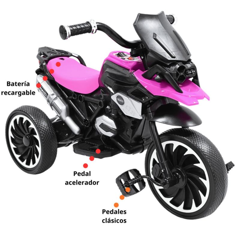 Moto Montable Eléctrica para Niños Triciclo Híbrido con Luces y Sonido Recargable 6v Soporta hasta 30 kg - Rosa