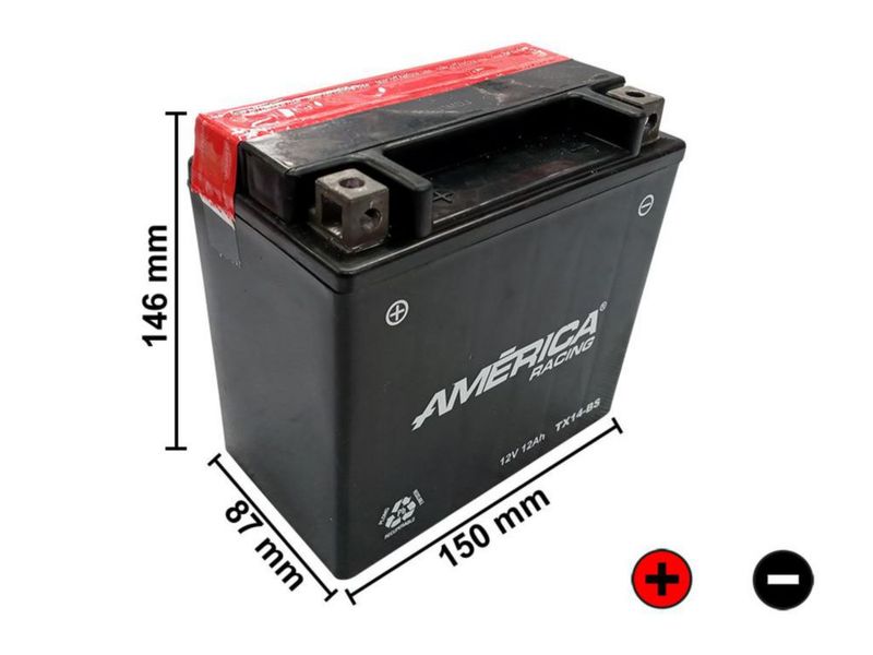 MOTOBATERIA GEL AMERICA AGM 12 VOLTS 12 AMPERES MODELO TX14-BS-AM