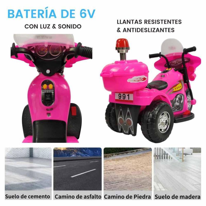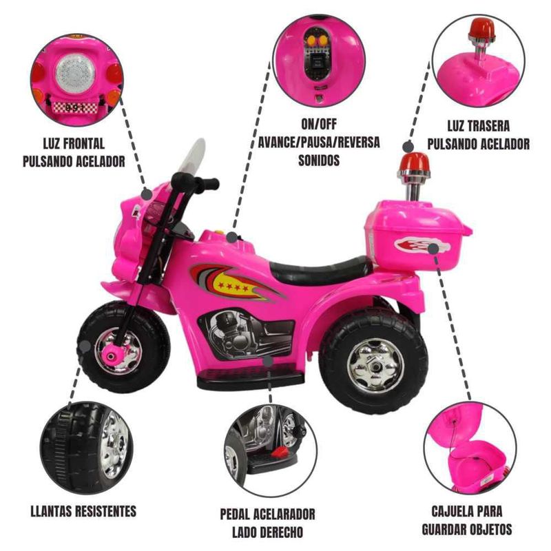 Motocicleta Montable Electrica Pequeña Sonido Luz LED 6v Rosa