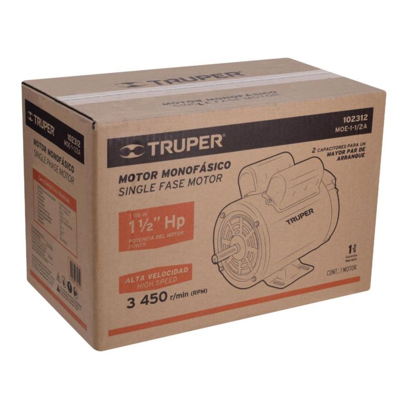 Motor Eléctrico Monofásico 1 1/2 Hp Alta Velocidad 102312 Truper