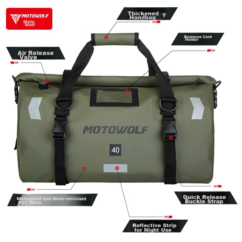 MotosAccesorios para motocicletaMochilasMOTOWOLF Bolsa trasera para motocicleta Negra Impermeable