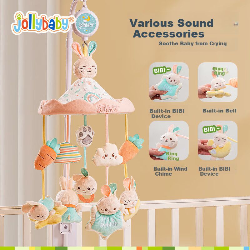 Móvil musical JOLLYBABY giratorio para cuna de poliéster y plástico diseño conejo para bebés