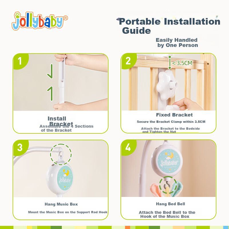 Bebés y juguetesBebésEstimulaciónMóvil musical JOLLYBABY giratorio para cuna de poliéster y plástico diseño conejo para bebés