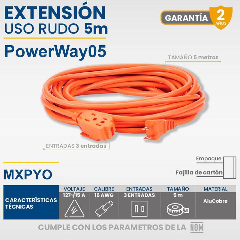 HerramientasMaterial EléctricoExtensiones y MulticontactosMulticontacto Uso Rudo MXPYO-004 PowerWay05 Extensión Eléctrica Alta Calidad