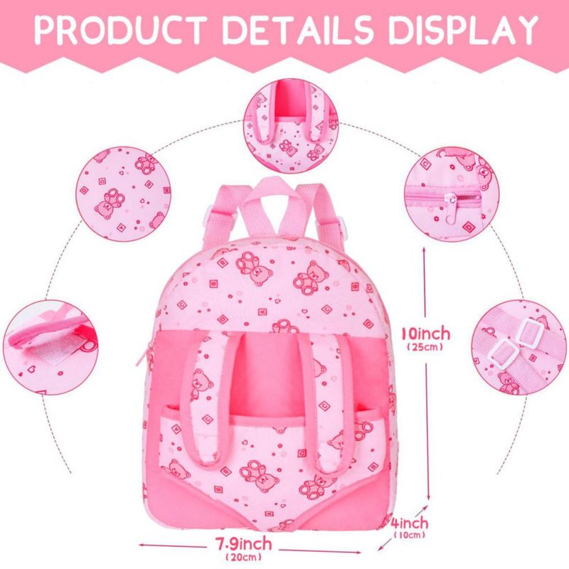 Muñeca bebé de 30 cm con mochila portabebés con estampado de oso en caja de regalo. Muñecas bebé realistas de 30 cm con ropa y a