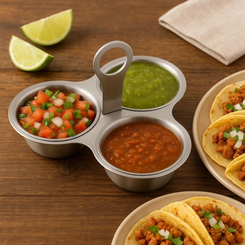 HogarCocinaUtensiliosMöven Salsera Triple 1.5 L de Acero Inoxidable 18/0, Pack 2 Piezas
