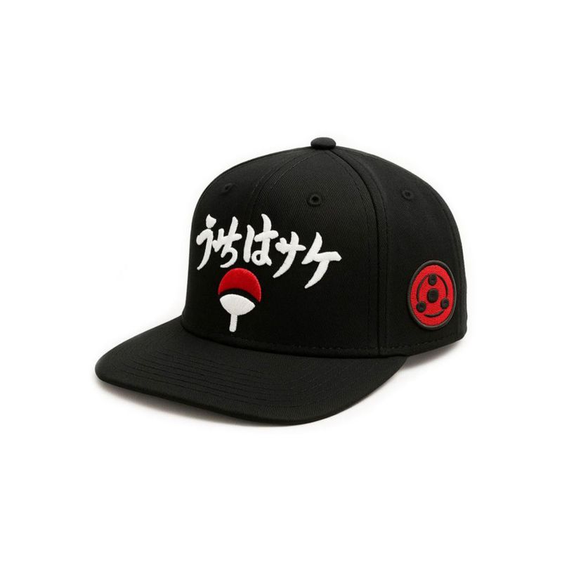 NARUTO Gorra Snapback Negra Uchiha Sasuke con Bordado Sharingan Visera Plana