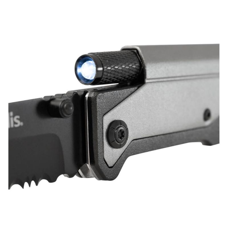 Navaja de bloqueo Wallis con mango S.O.S. de metal con clip, LED y pedernal