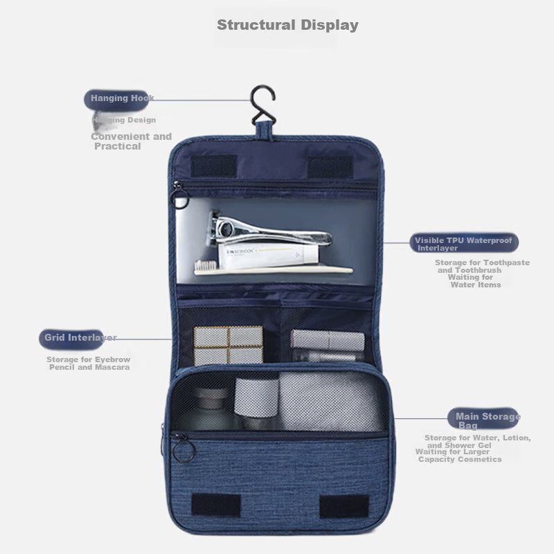 Neceser Impermeable de Tejido Oxford Multifuncional 24x19x9 cm