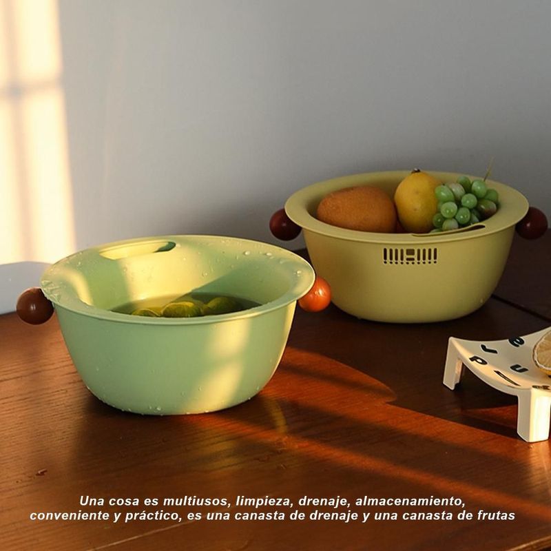 HogarCocinaUtensiliosNuevo, cesta de lavado de verduras de doble capa, gruesa, bonita, redonda, de un solo color, para el hogar, almacenamiento de frutas.HOGAWAY