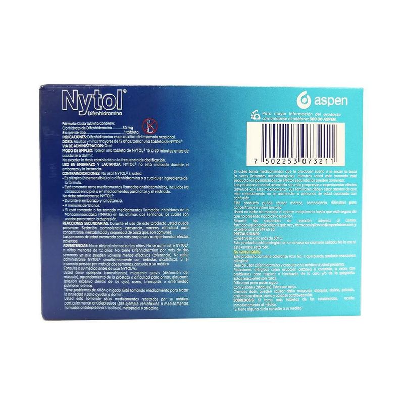 Salud y Equipamiento MédicoFarmaciaMedicamentosNYTOL DIFENHIDRAMINA 50 mg Tableta