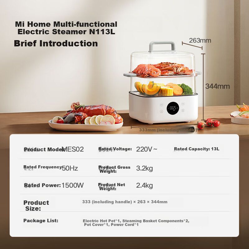 Línea blancaElectrodomésticosOllas y Sartenes EléctricosOlla eléctrica Mi Home N1 13L acero inoxidable blanco multifuncional vaporera