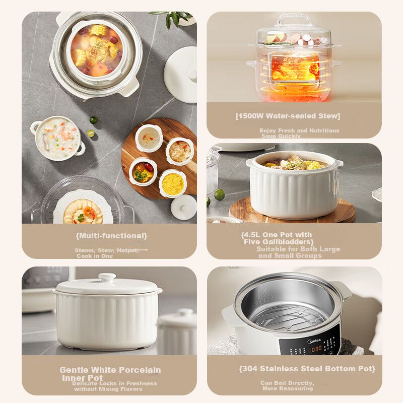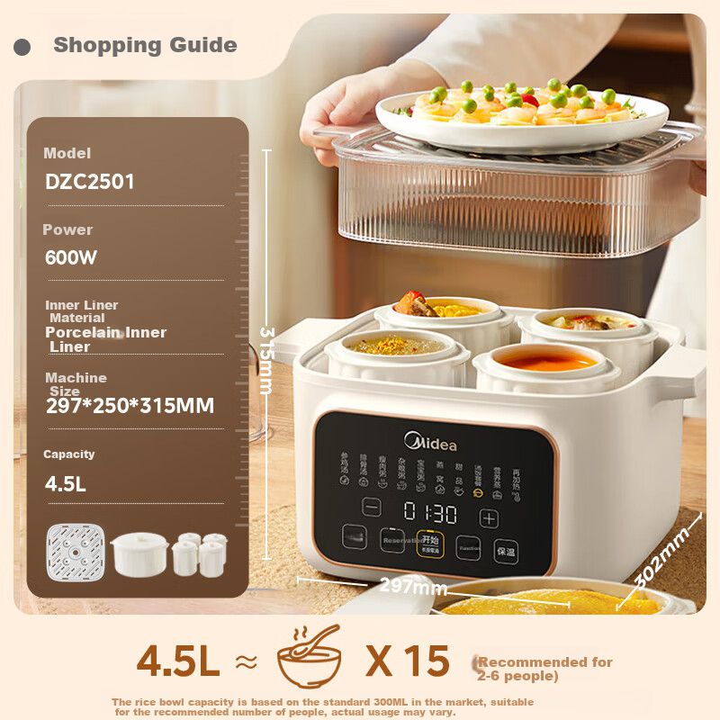 Olla Eléctrica Midea MD-DZC2556 4.5L Acero Inoxidable Multifuncional