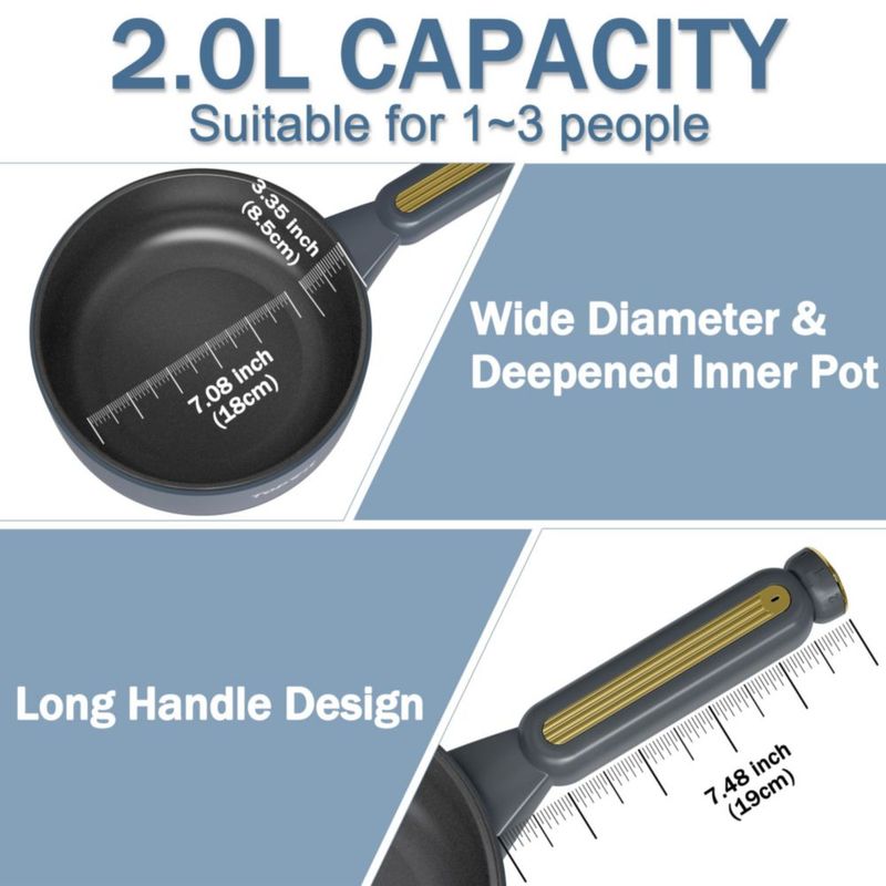 Línea blancaElectrodomésticosEspecializadosOlla eléctrica TOPWIT de 2 l, antiadherente, portátil para cocinar carne, huevos, arroz frito, ramen y sopa, con control de pote
