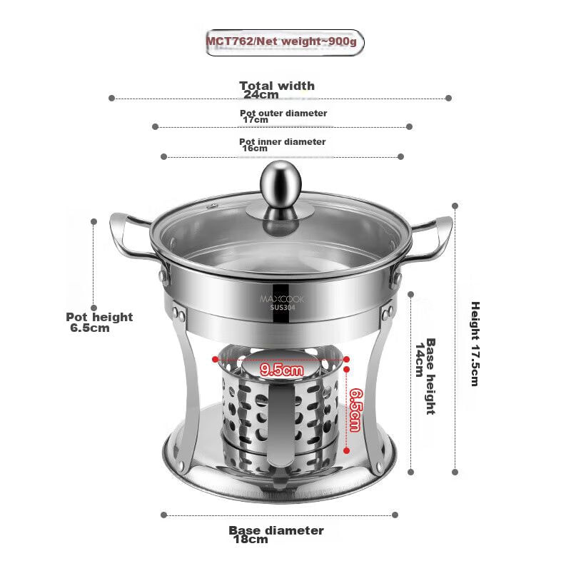 Olla Hot Pot MAXCOOK MCT762 Fabricación Acero Inoxidable 304