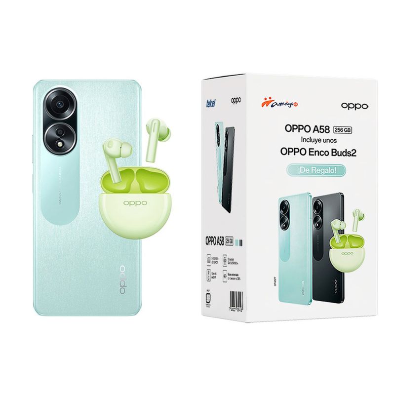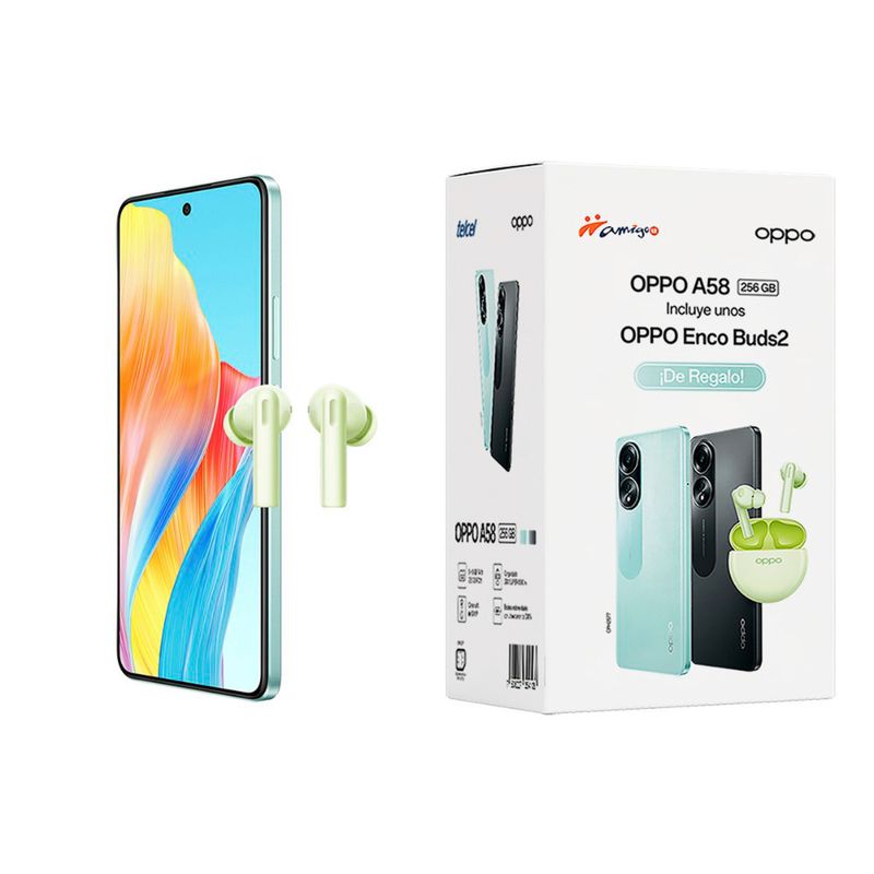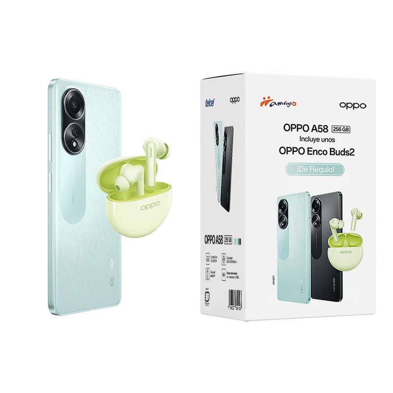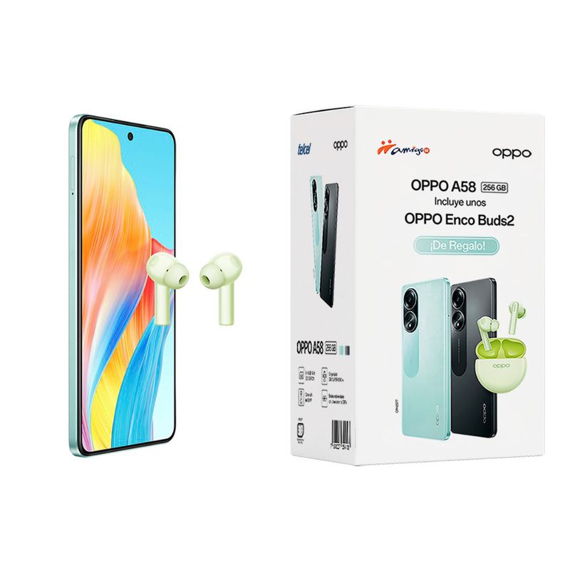 TelefoníaCelularesTelcelOppo A58 256GB Telcel Verde más Audífonos