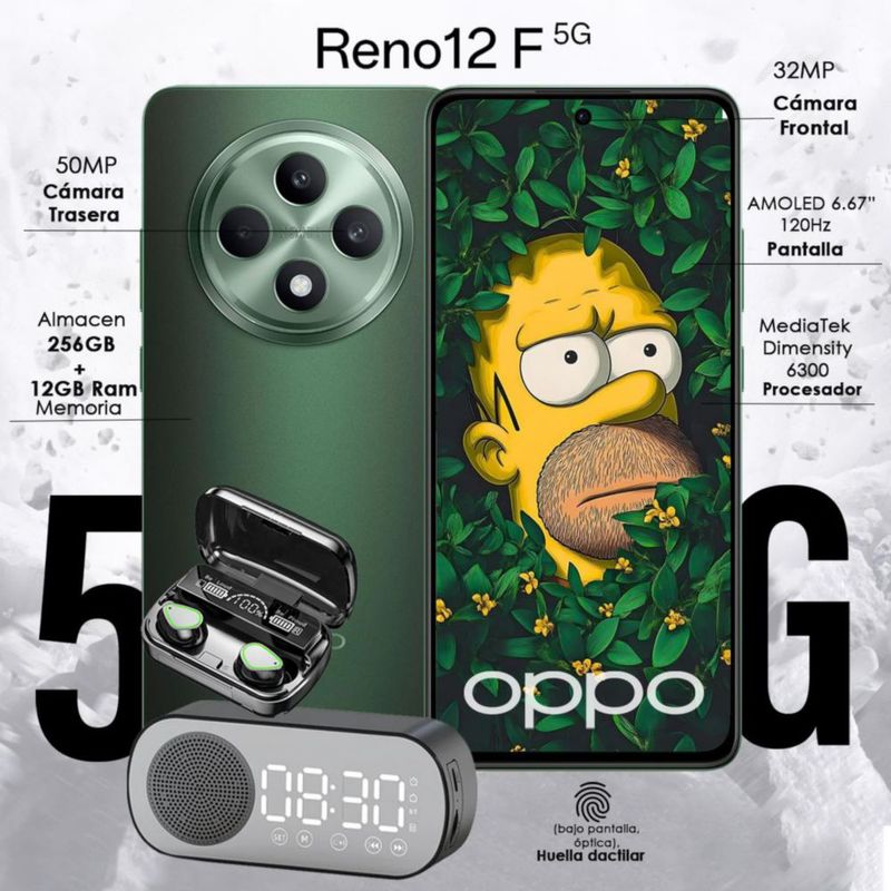 OPPO Reno 12 F 5G 12GB RAM 256GB Dual sim Verde AMOLED 120 Hz con Audífono Bluetooth + Bocina