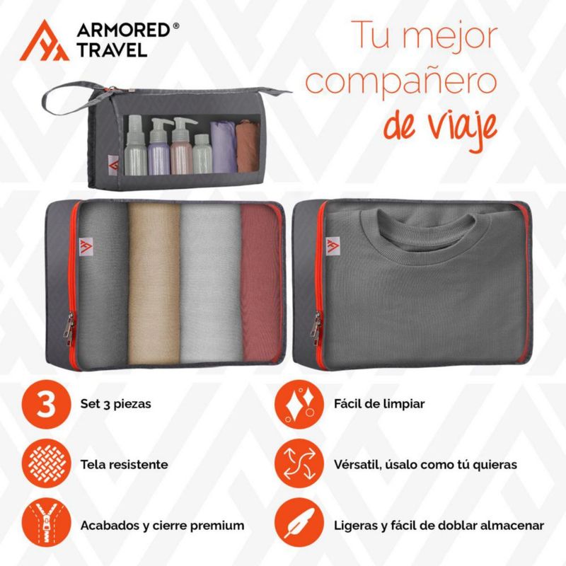 Organizadores de viaje para maletas bolsas organizadoras paquete 3 piezas Gris-CUARZO ideal para maleta carry-on de mano esenciales para viaje