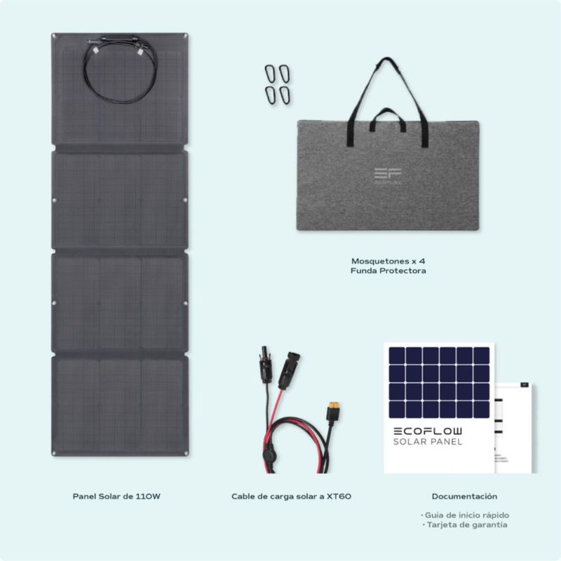 Panel Solar 110W Ecoflow - Solución de Energía Portátil para Exteriores y Uso Doméstico, Carga Rápida y Alta Eficiencia, color gris.
