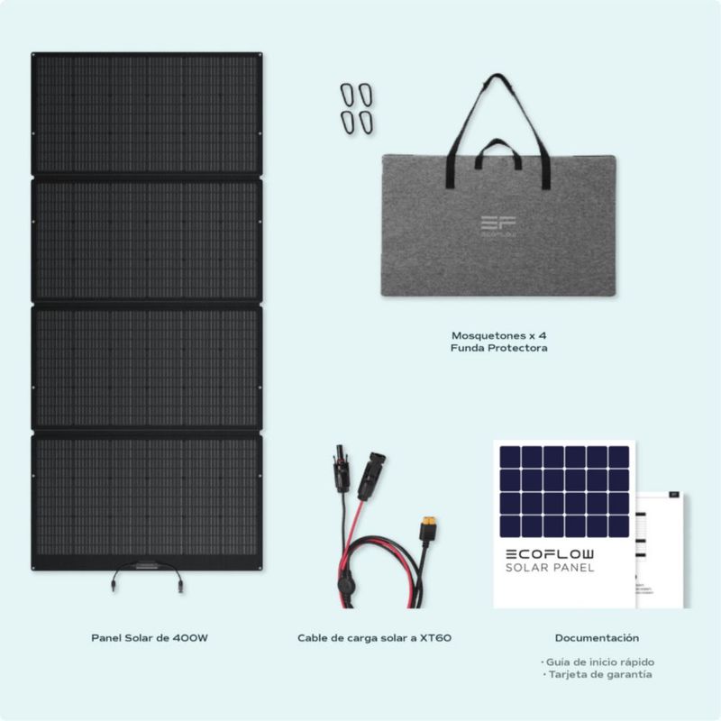 Panel Solar 400W Ecoflow- Máxima Potencia para Energía Continua en Exteriores, Uso Doméstico y Emergencias, Carga Rápida y Alta Eficiencia