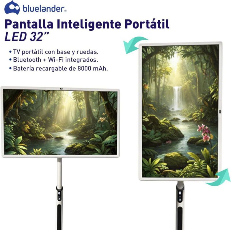 ElectrónicaTv y videoPantallasPantalla Inteligente Blulander LED 32" Pulgadas con Base, Resolución FHD 1920x1080, Conexión Bluetooth y WiFi, con Memoria 8 GB RAM + 128 GB ROM