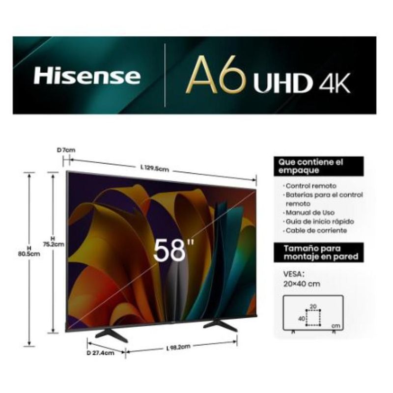 Pantalla LED Hisense 58 Pulgadas 4K Smart 58A6NV