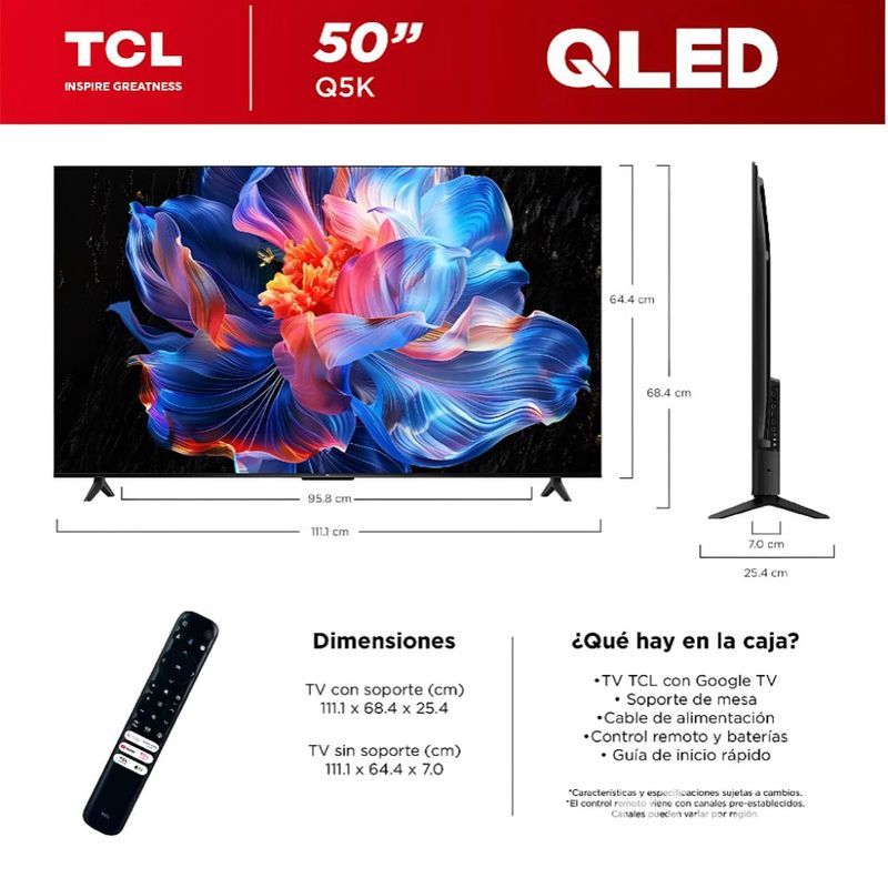 Pantalla TCL 50Q5K 50" pulgadas QLED 4K Smart TV Google TV