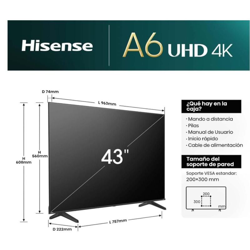 Pantalla UHD Hisense 43 Pulgadas 4K Smart 43A65NV
