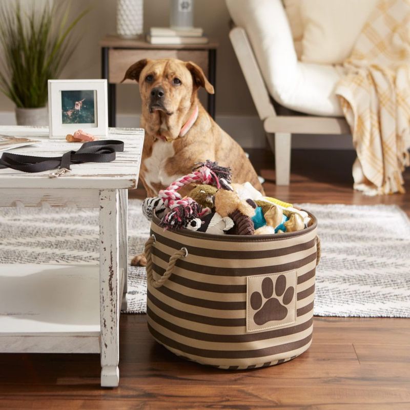 HogarClosets y LavanderíaBotes de LavanderíaPapelera Bone Dry para mascotas parche a rayas en forma de pata marrón tamaño mediano