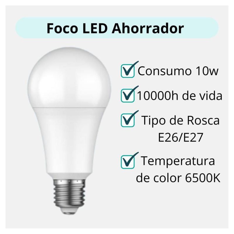 HerramientasIluminaciónFocosPaquete de 10 Focos Ahorradores de 10w Equivalente a 50w