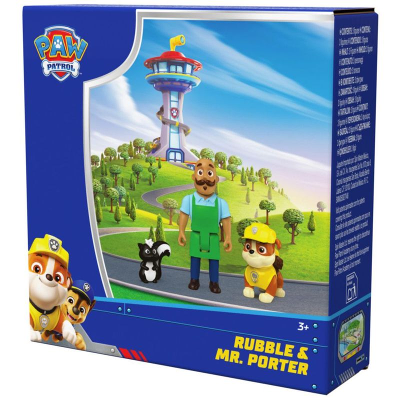 Paquete de figuras PAW Patrol Rubble & Mr. Porter con Skunk Toy 3+