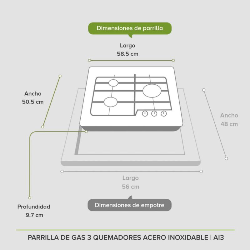 Línea blancaCocinaParrillasParrilla A Gas 3 Quemadores Acero Inoxidable Avera AI3