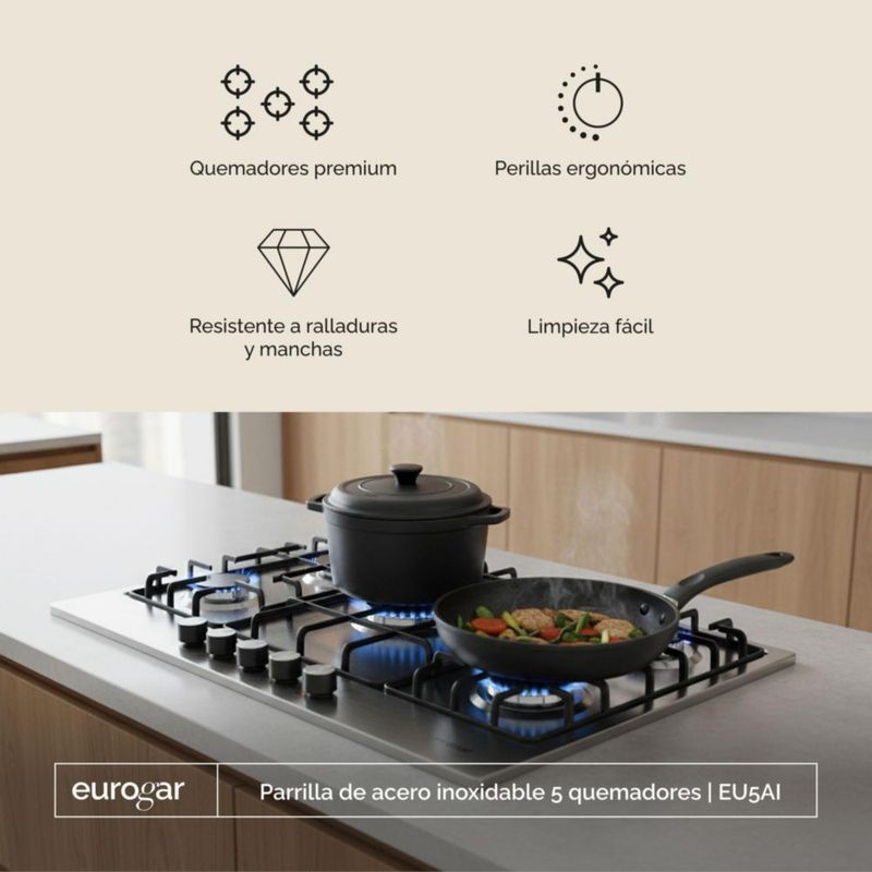 Línea blancaCocinaParrillasParrilla a gas 5 quemadores acero inoxidable Eurogar EU5AI