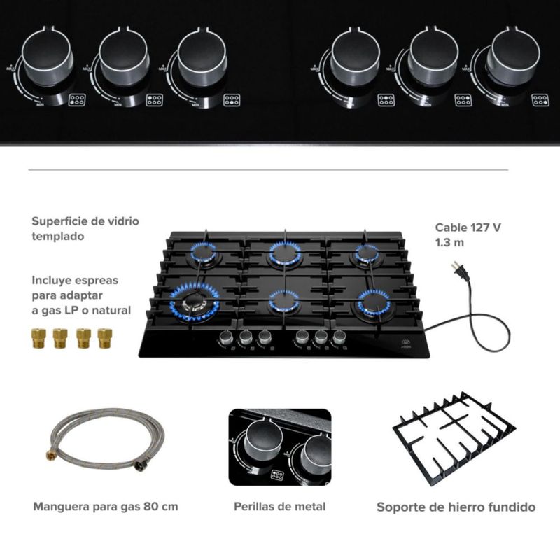 Parrilla a Gas Empotrable 6 Quemadores Vidrio Templado Avera VT6