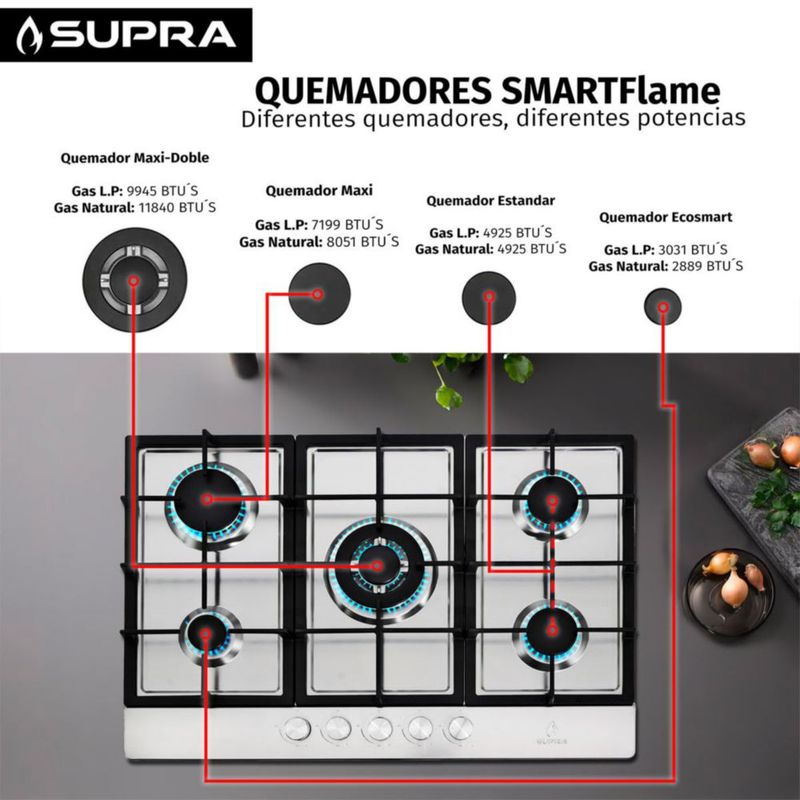 Parrilla a gas empotrable de 5 quemadores de 76cm 5Q-PS-76