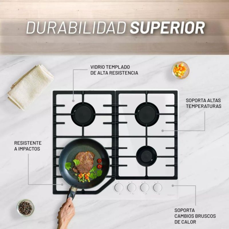 Línea blancaCocinaParrillasparrilla con cristal templado color blanco a gas 4 quemadores