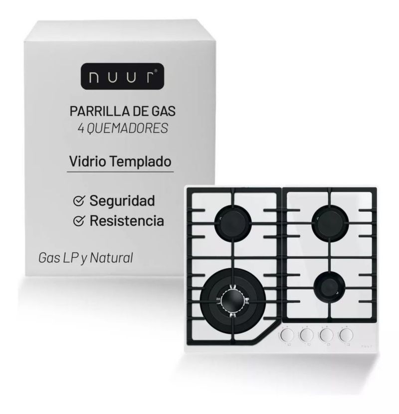 parrilla con cristal templado color blanco a gas 4 quemadores