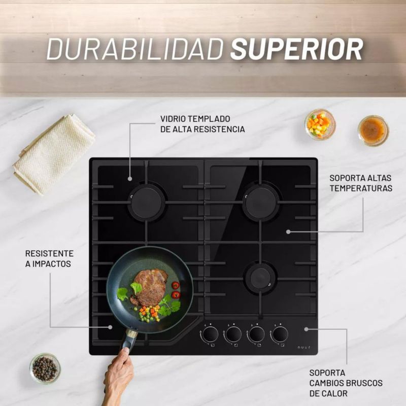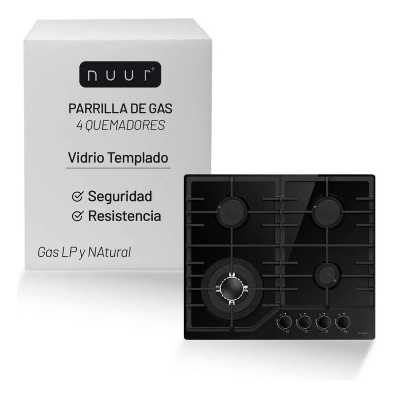 PARRILLA CON SISTEMA TERMOPAR DE 4 QUEMADORES CRISTAL TEMPLADO 60 CM