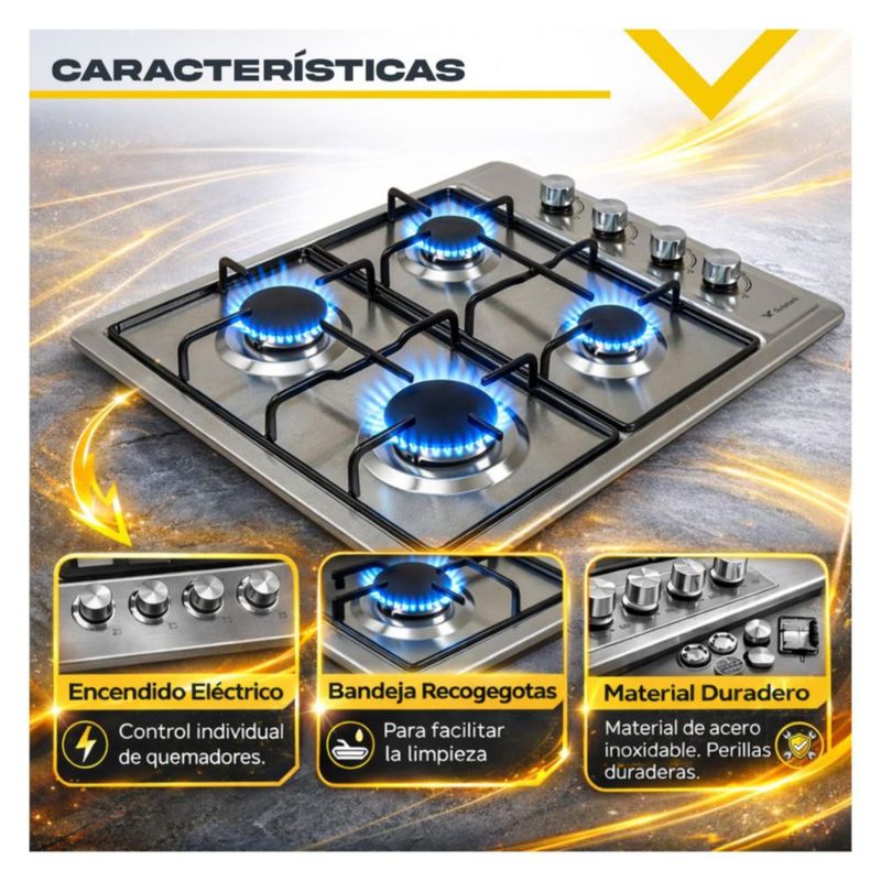 Parrilla De Gas Empotrable 4 Quemadores Acero Inoxidable Encendido Eléctrico Gas Lp Gas Natural