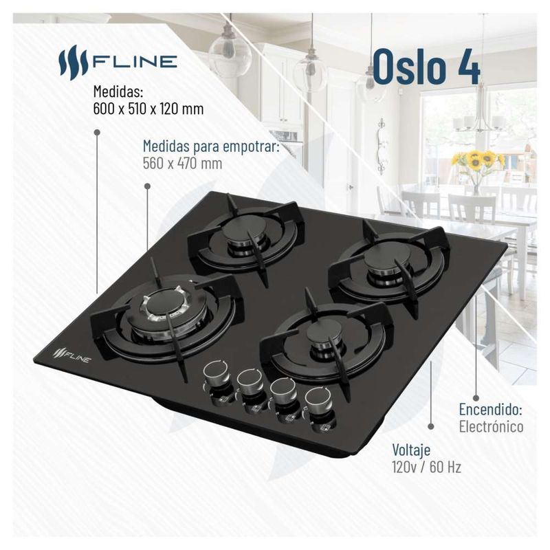 Parrilla de Gas Empotrable 4 Quemadores Vidrio templado Oslo 4 FLINE