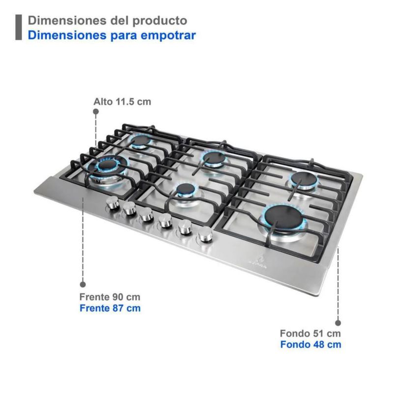 Parrilla de gas empotrable de 90cm DIAMOND STEEL