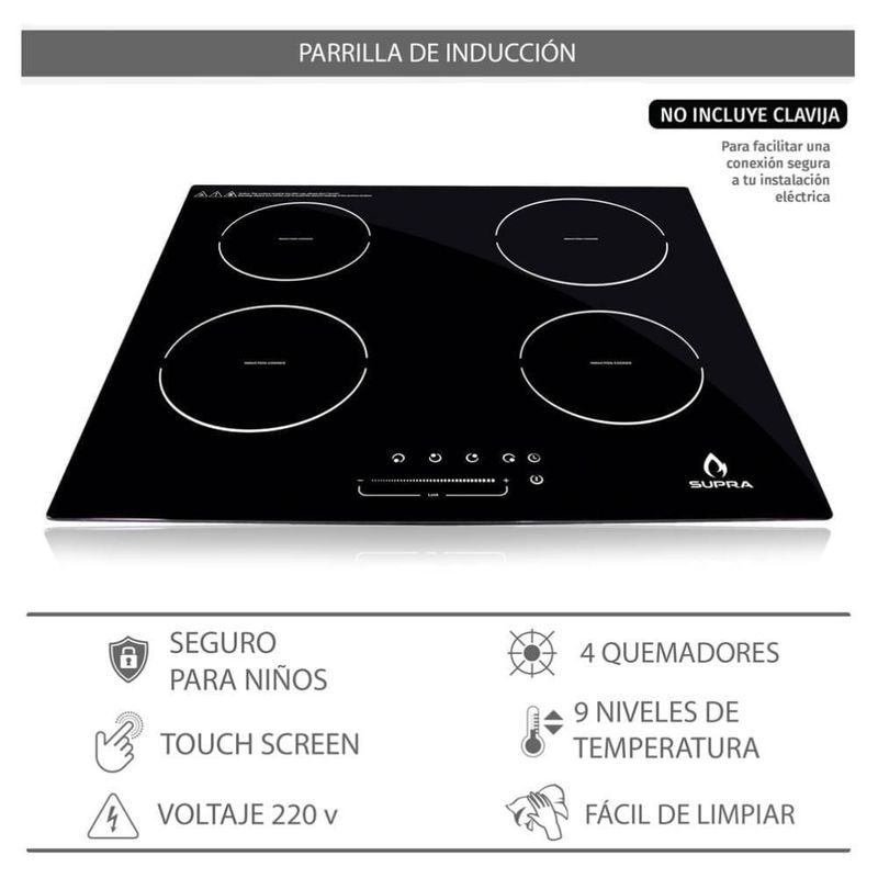 Parrilla de inducción con 4 quemadores SUPRA 4Q IN 220V