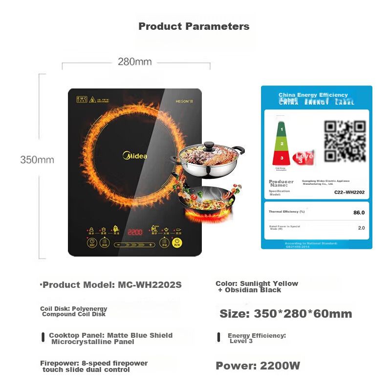 Línea blancaElectrodomésticosTostadores y ParrillasParrilla de Inducción Midea WH2202S 1 quemador 2200W